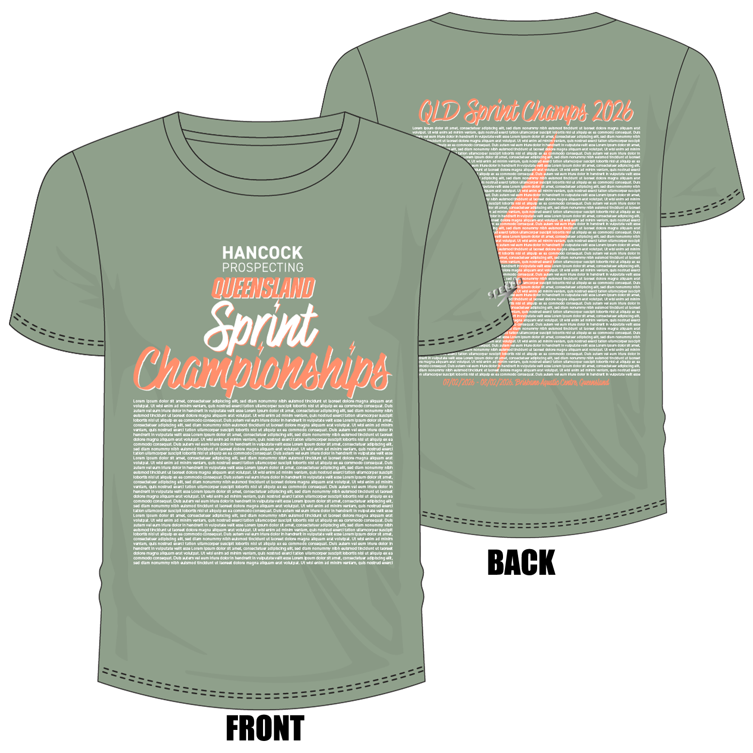 Swimming QLD State Sprints - Green Unisex Names T-Shirt