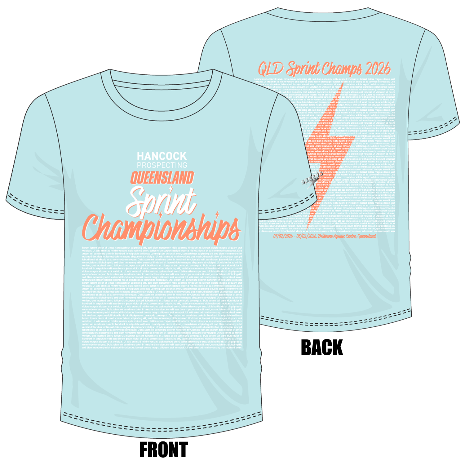 Swimming QLD State Sprints - Aqua Unisex Names T-Shirt